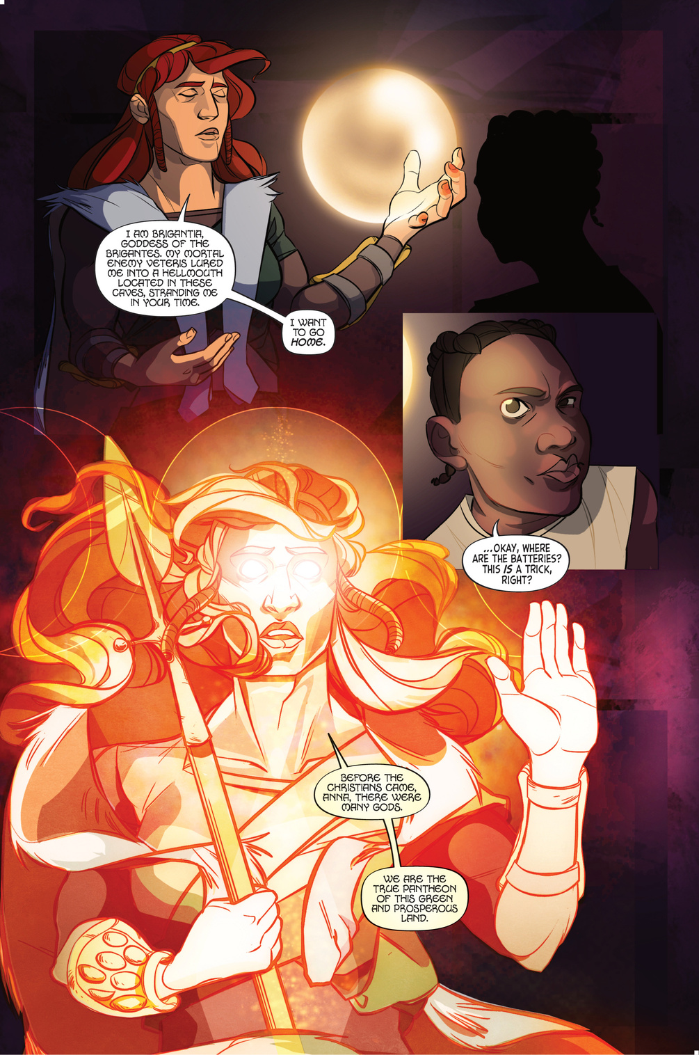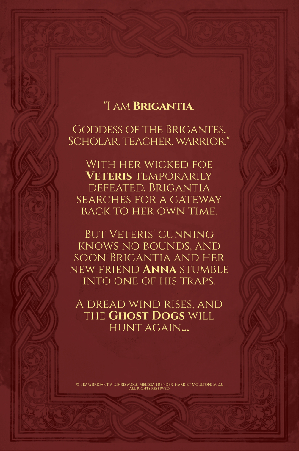 In issue #2, Brigantia is slowly getting to grips with her new life in modern Britain, but can't shake her desire to find a way back to her own time. Aided by a new friend, Anna, she searches for a portal back to the past. However, her plan is thwarted by a new and terrifying threat - the Ghost Dogs.